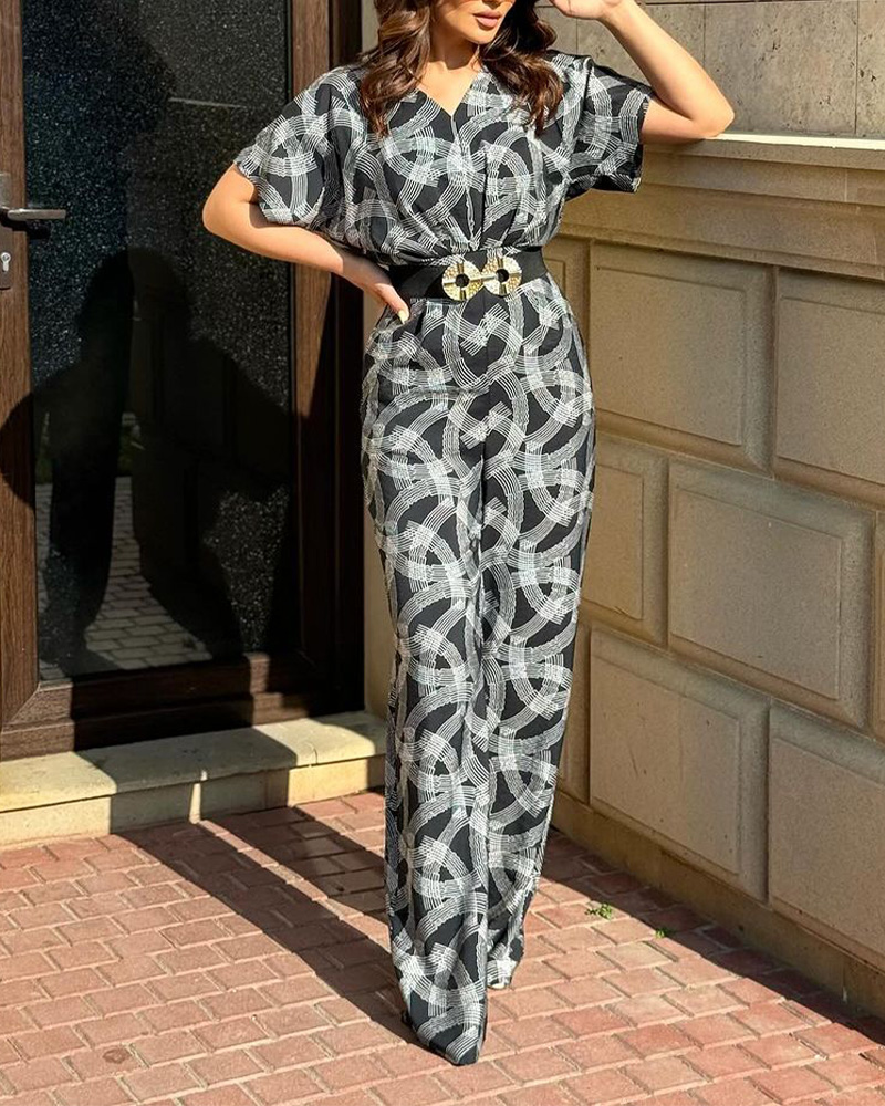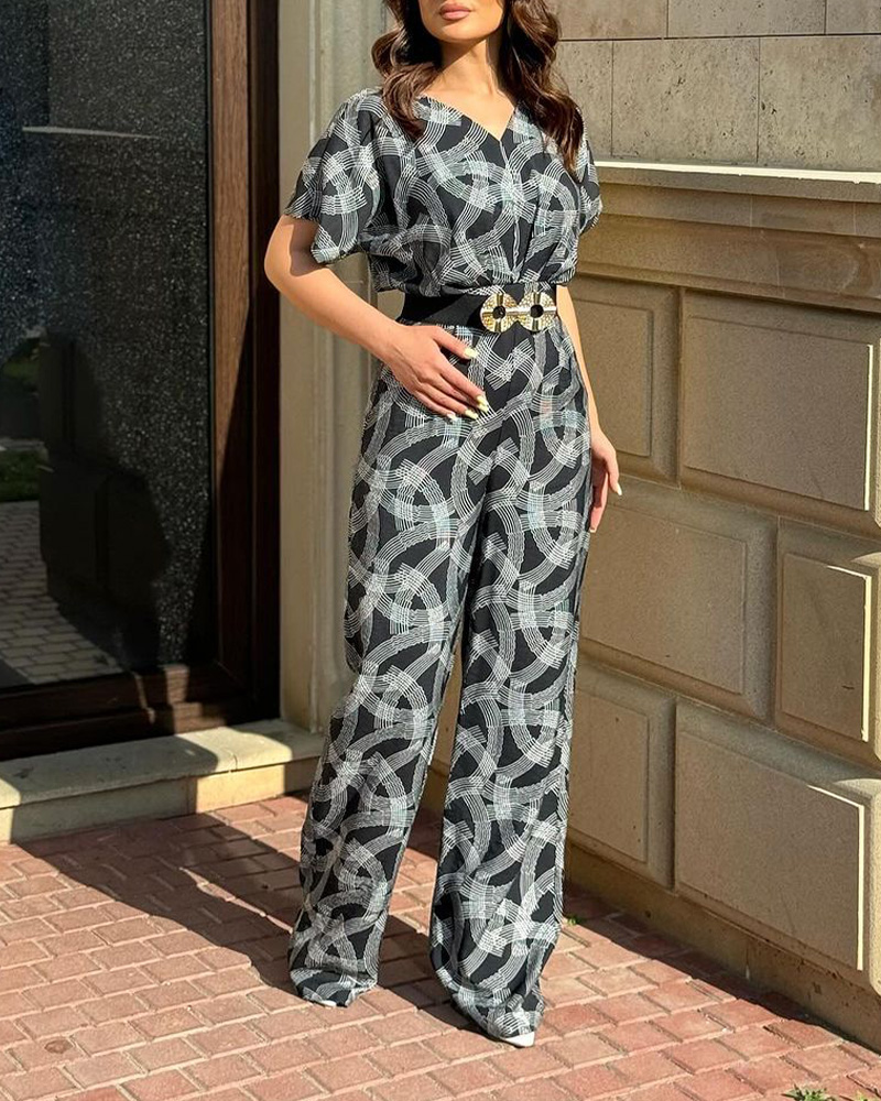 Product Name: Abstract Print Short-sleeved Jumpsuit(Without Belt)