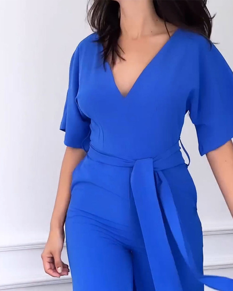 Product Name: Casual V-neck Short-Sleeved Jumpsuit
