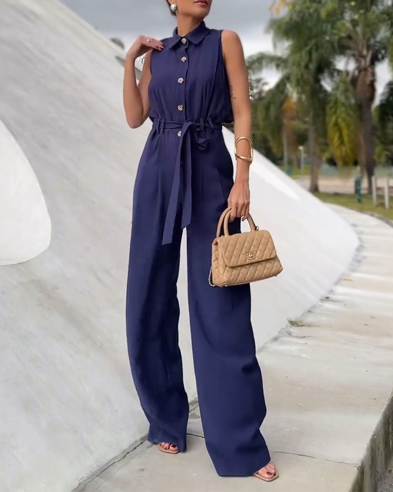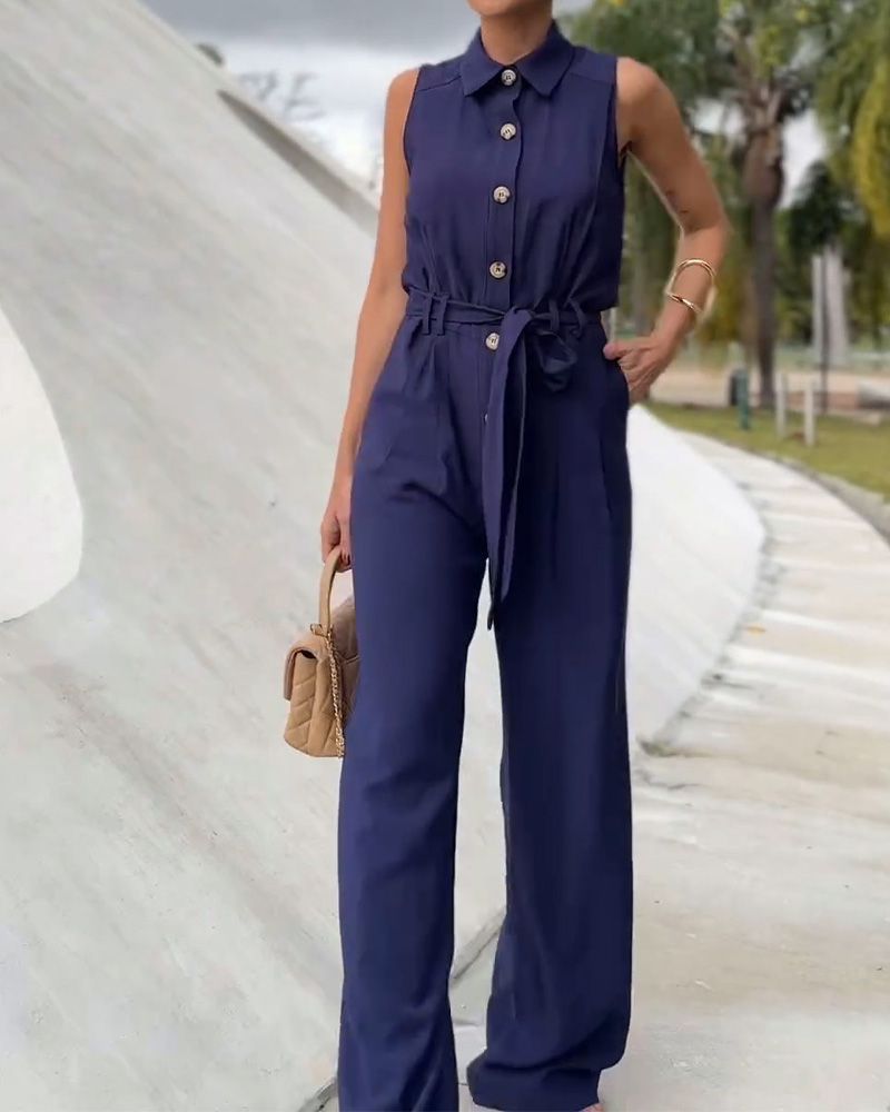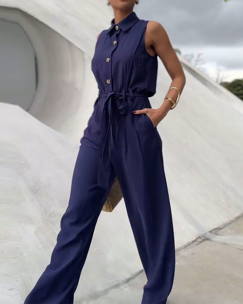 Product Name: Ladies' Buttoned Lapel Jumpsuit