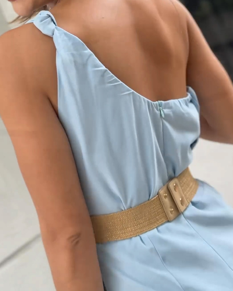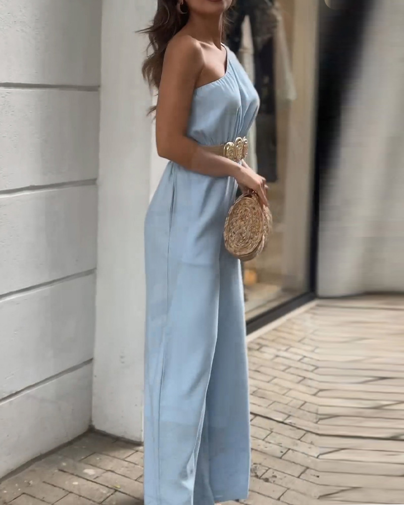 Product Name: Ladies' Elegant One-Shoulder Jumpsuit (Without Belt)