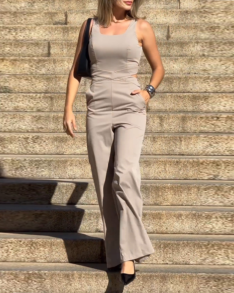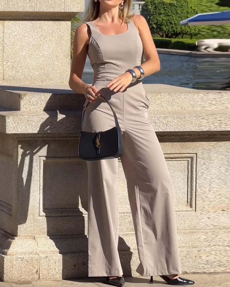 Pure Color Jumpsuit With Delicate Buttons On The Back