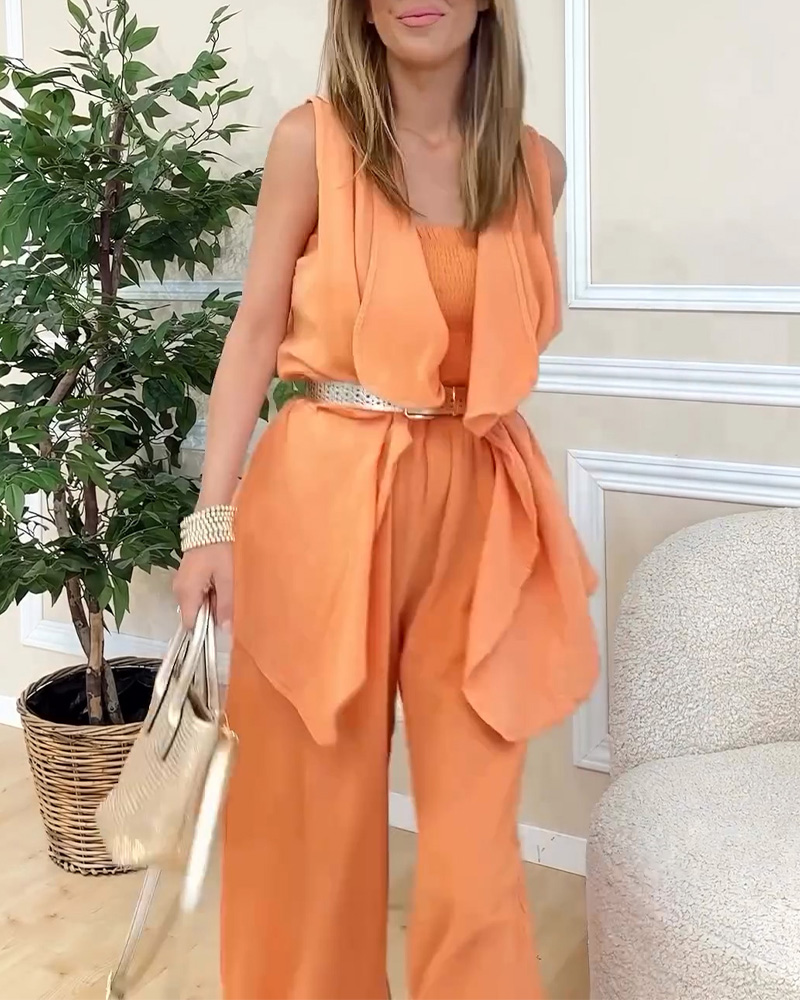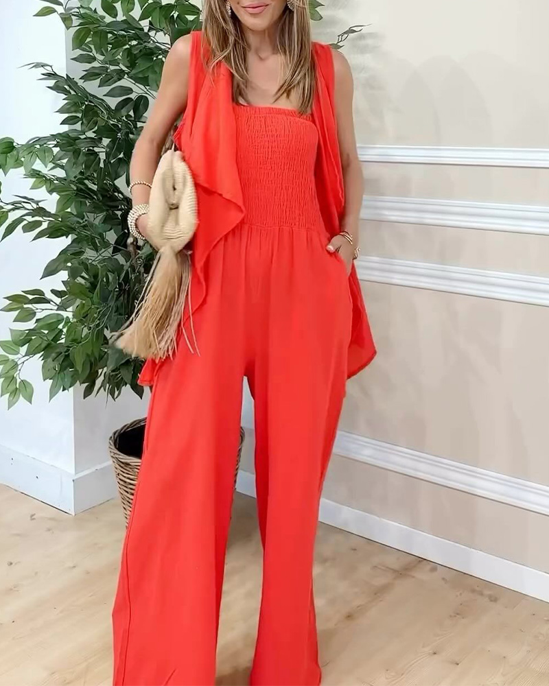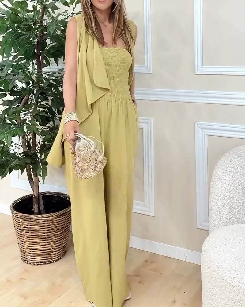 Strapless Jumpsuit And Irregular Vest Top Suit