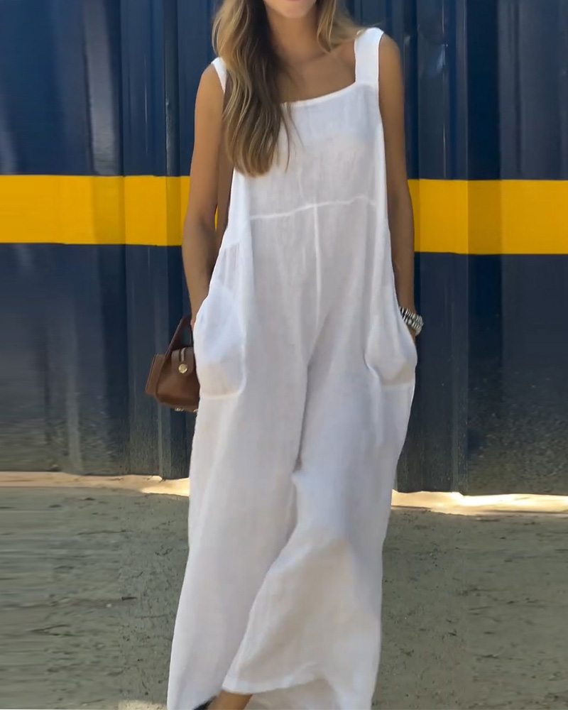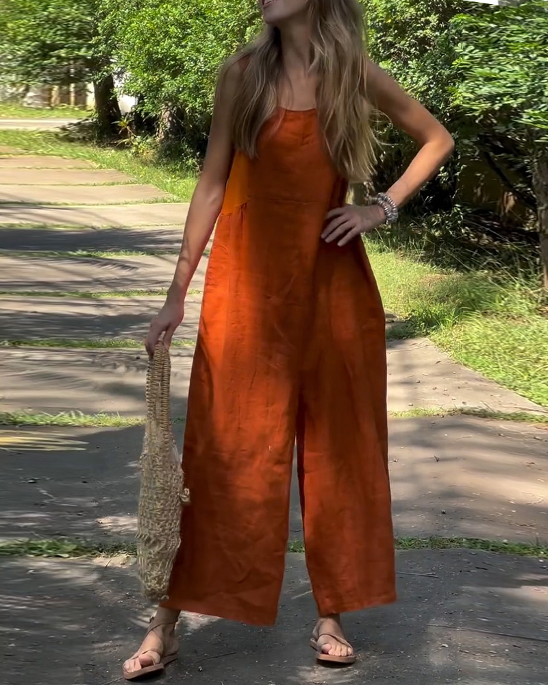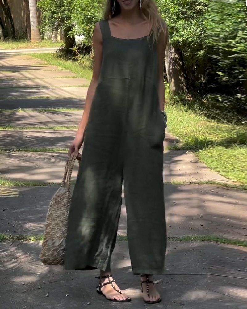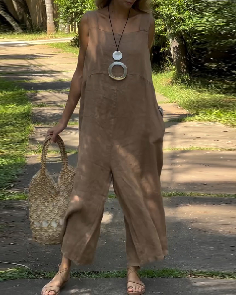 Product Name: Washed Cotton Casual Loose Jumpsuit