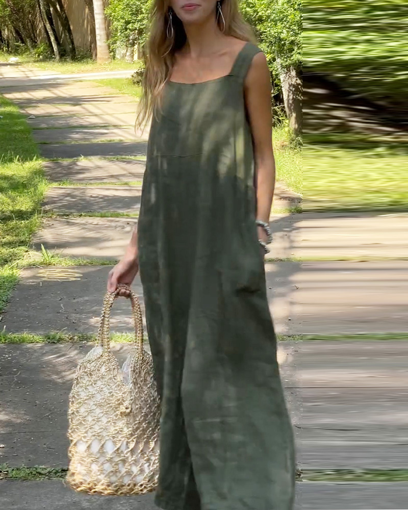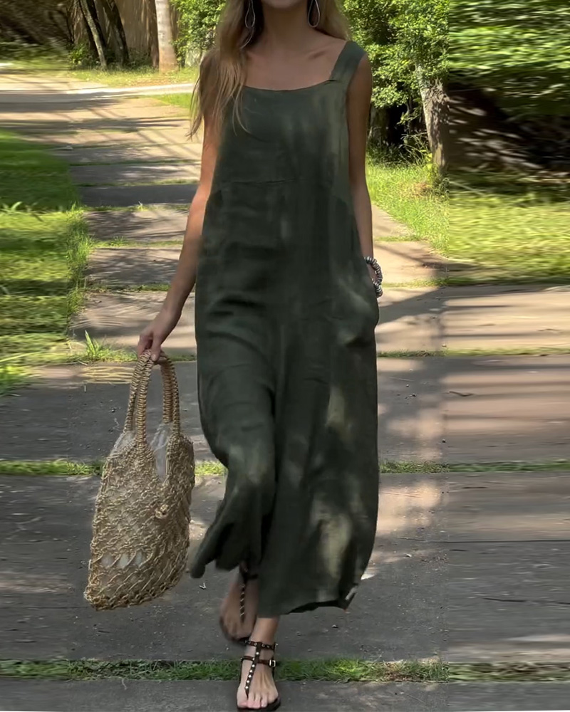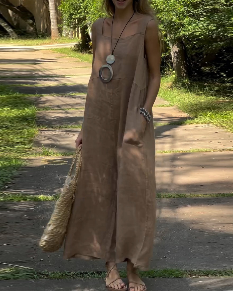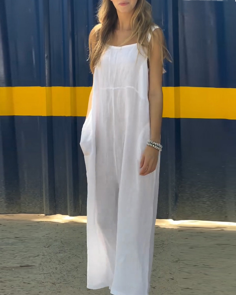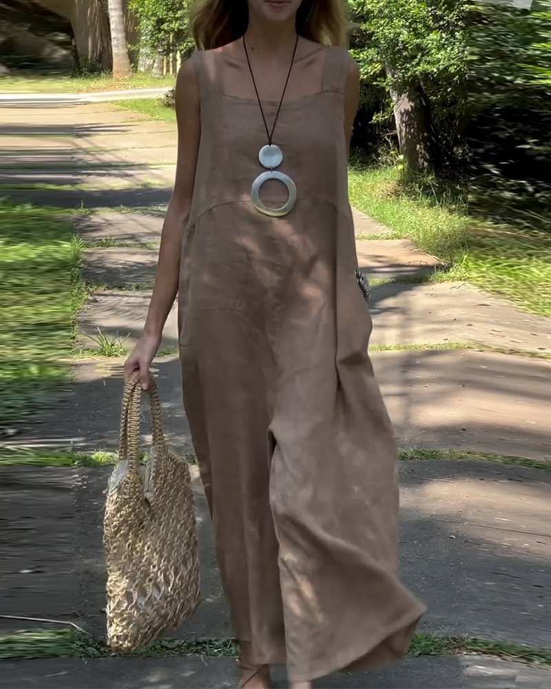 Product Name: Washed Cotton Casual Loose Jumpsuit
