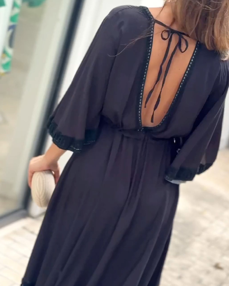 Product Name: Lace Spliced Hem Printed Maxi Dress(Without Belt)