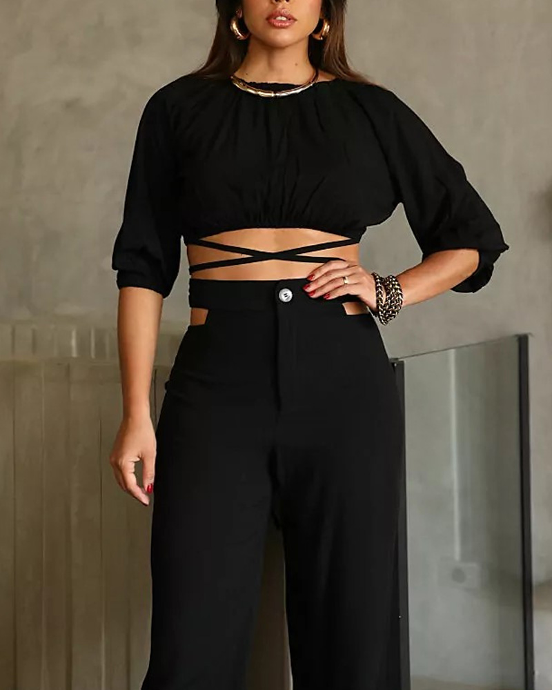 Product Name: Tie-Drawstring Top and Straight-Leg Lounge Pants Set