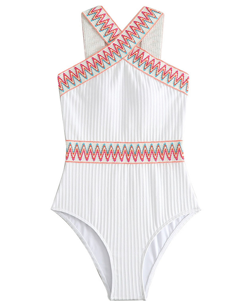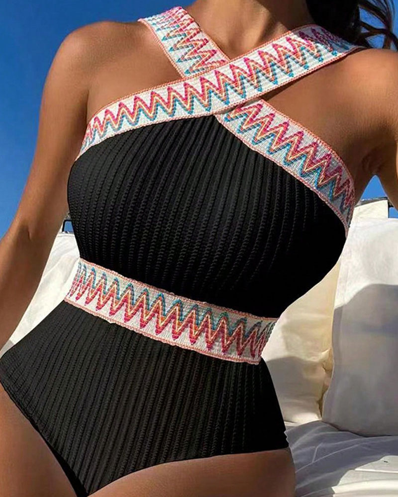 Product Name: Retro Colored Stretch One-Piece Swimsuit