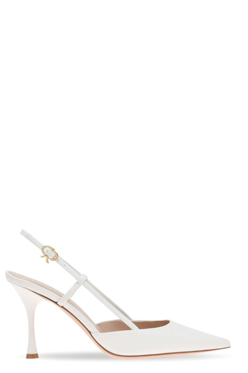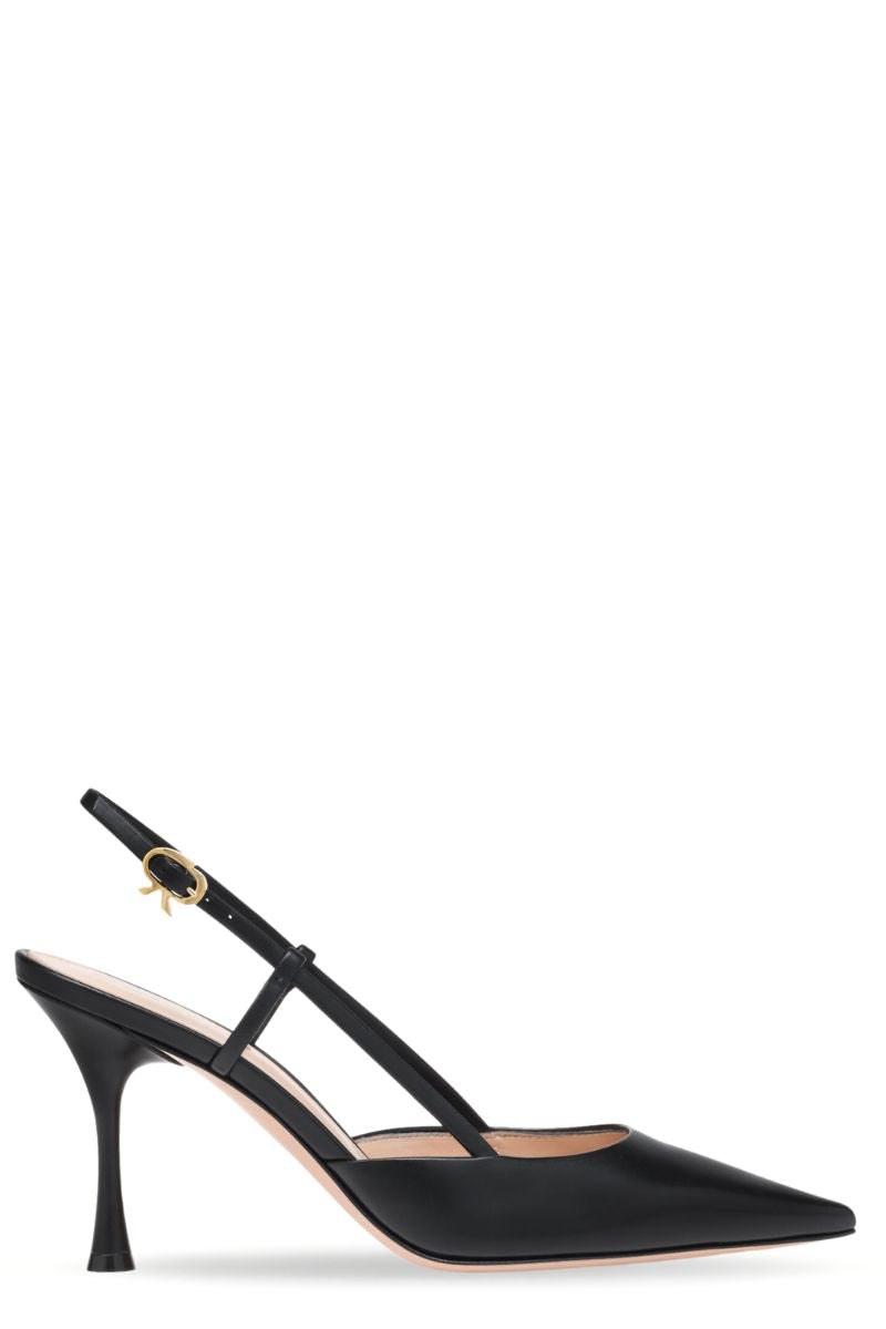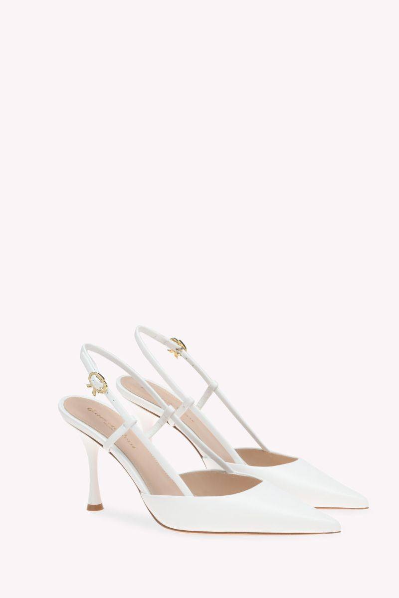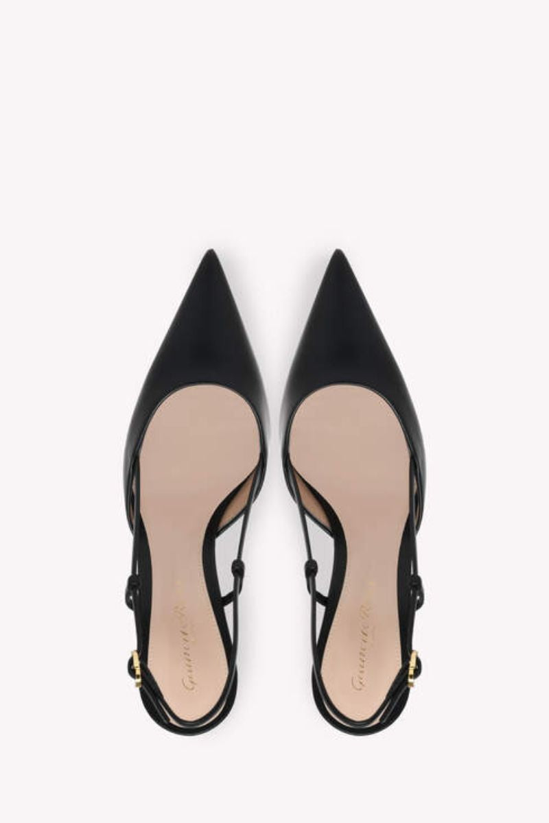 Set on a sleek 85mm hourglass heel, Ascent is a sophisticated pointed-toe slingback. The iconic Ribbon buckle in gold metal, signature of the brand, elegantly enriches the ankle strap.