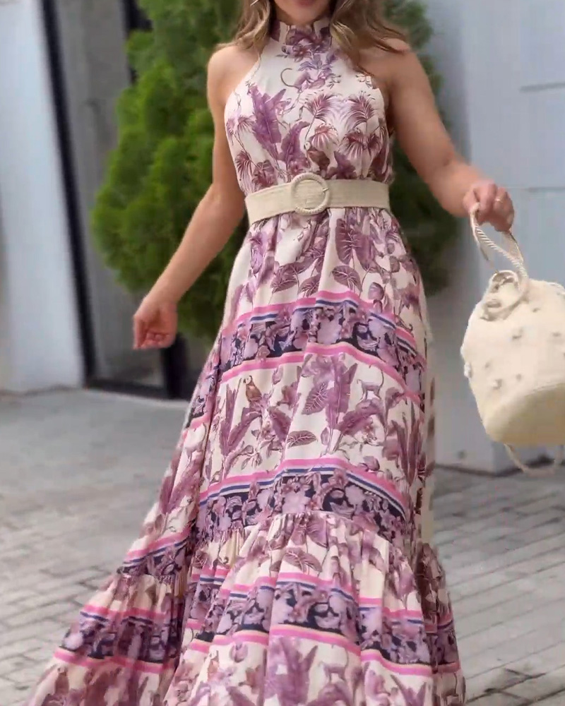 Product Name: Elegant Sleeveless Printed Dress(Without Belt)