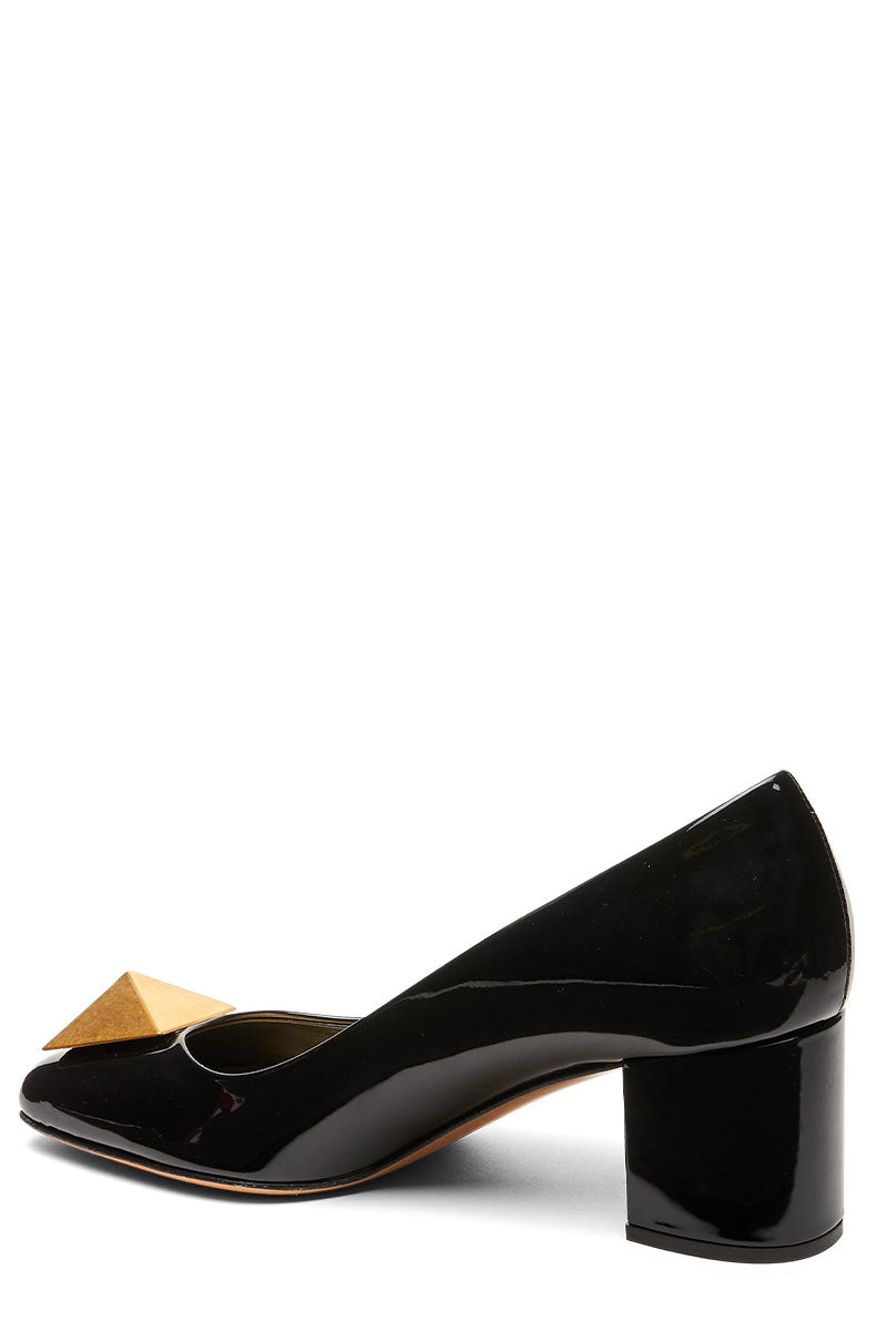 Valentino Garavani ONE STUD pump in patent leather with maxi stud embellishment.