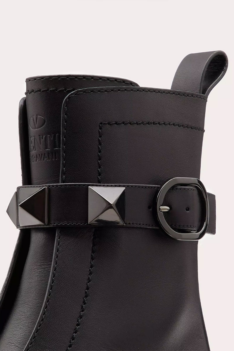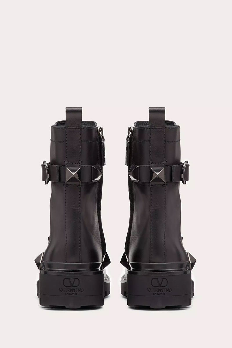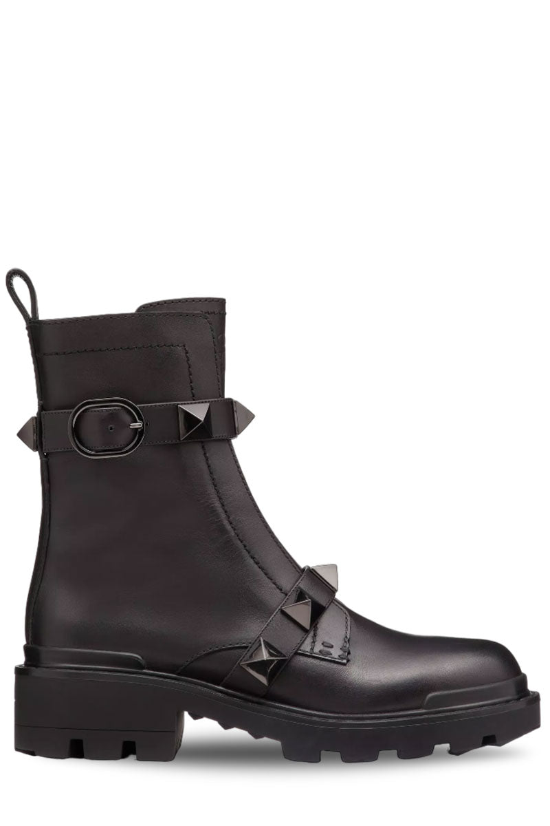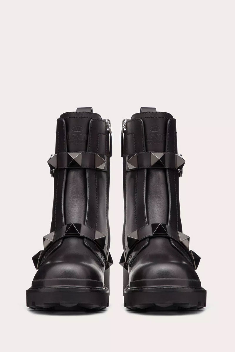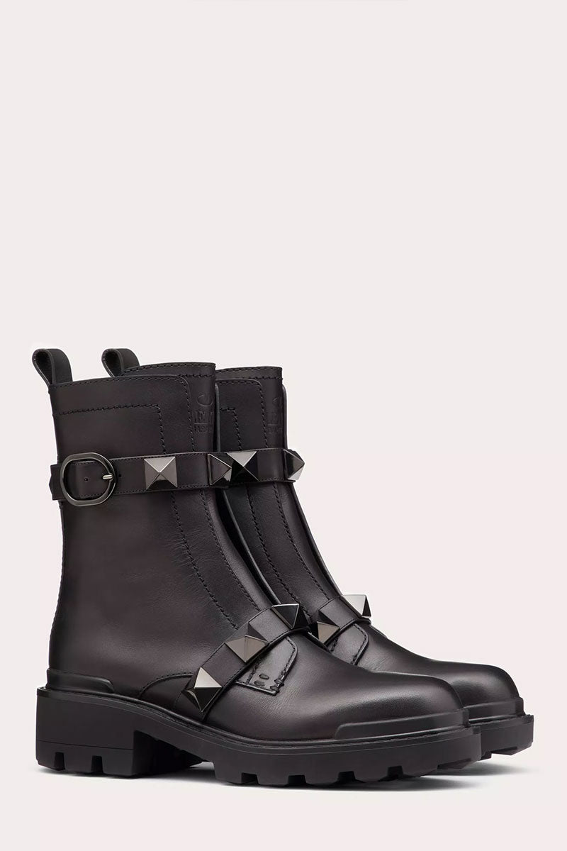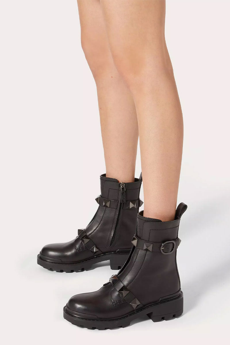 Valentino Garavani Roman Stud combat boot in calfskin with straps embellished with maxi studs.